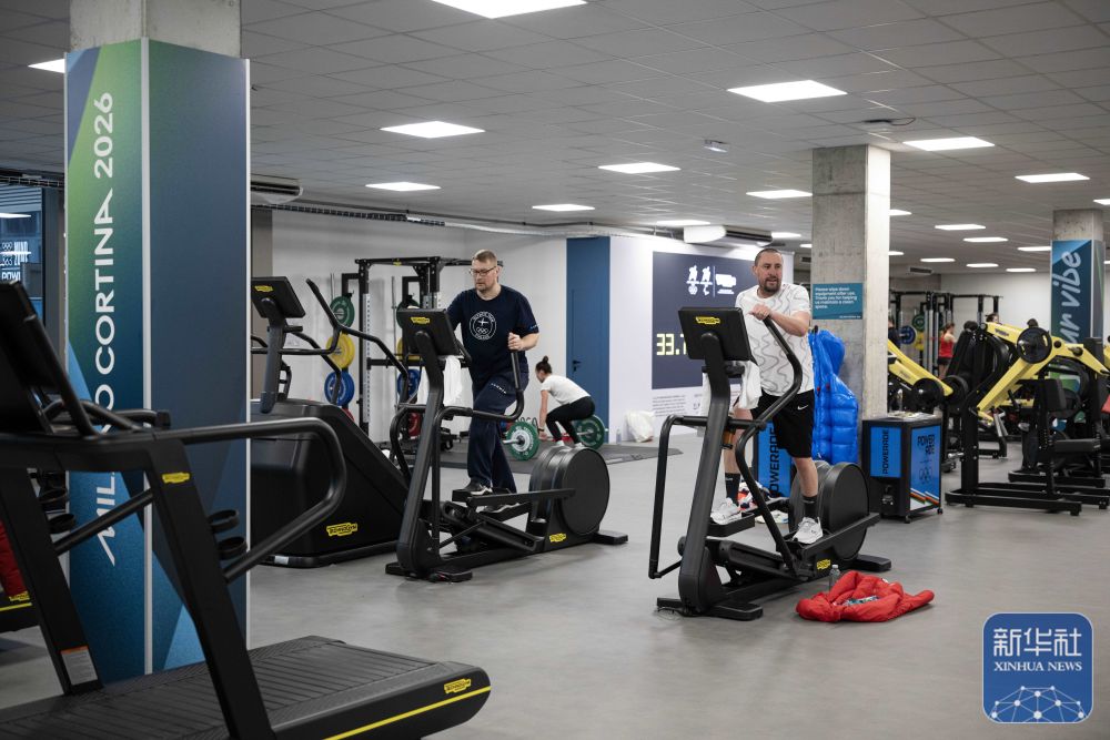 在意大利米兰奥运村,运动员在健身房内锻炼。新华社记者 张豪夫 摄