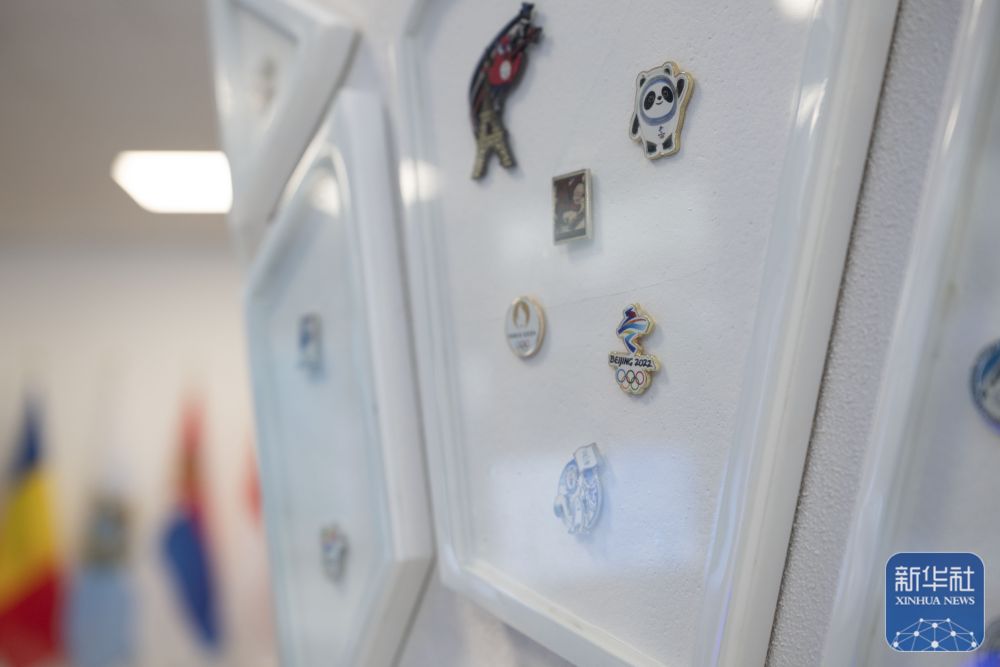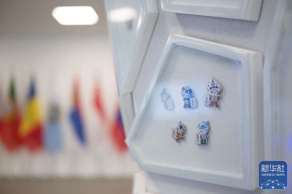 这是2月3日在意大利米兰奥运村拍摄的北京冬奥会徽章。新华社记者 张豪夫 摄