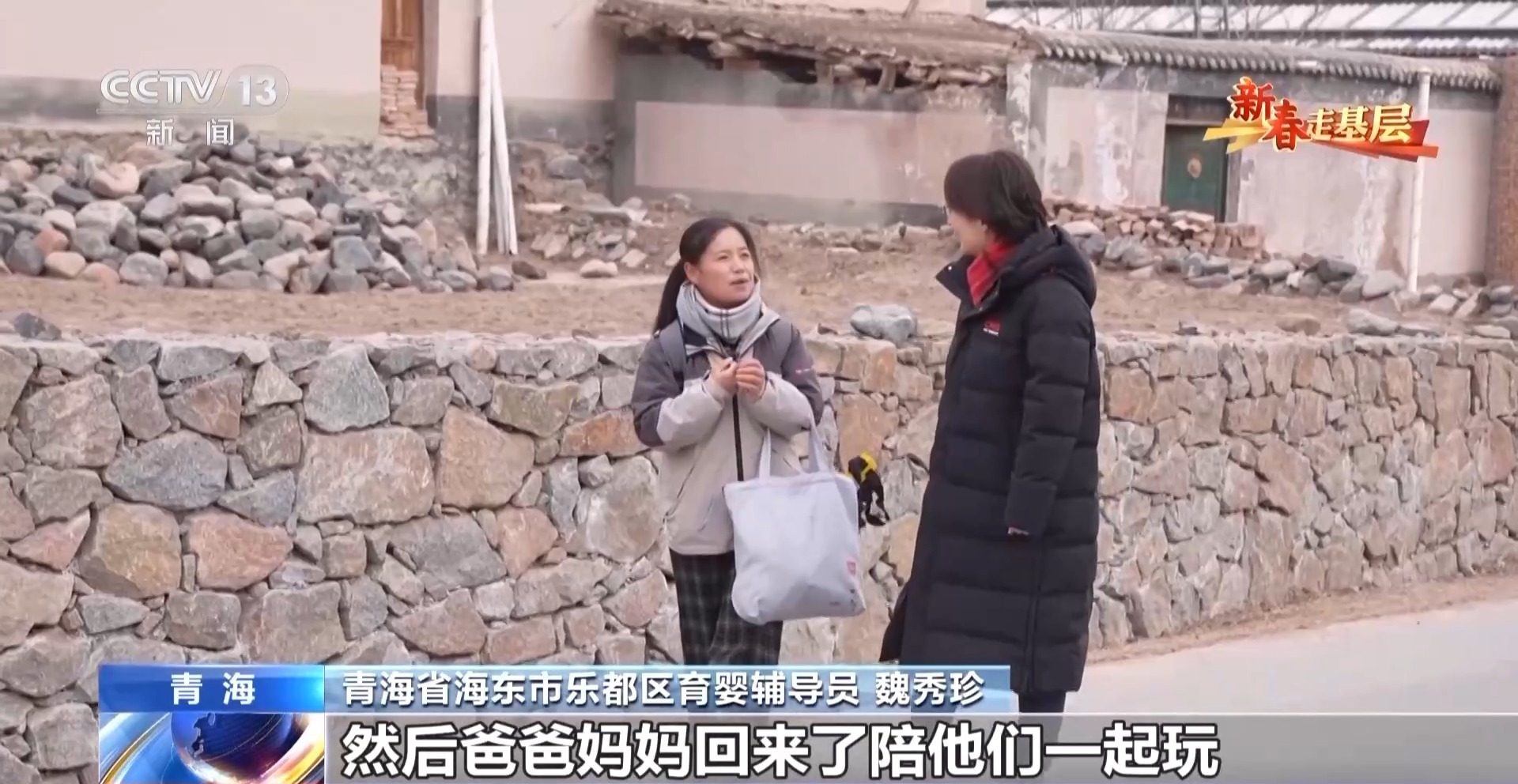 青海省海东市乐都区育婴辅导员 魏秀珍:小朋友看见我,跑着摔了一跤,站起来赶紧跑,躲在爷爷的后面一直不出来,我当时拿着玩具吱吱响,她探出小脑袋看了一下。爷爷说,晚上小朋友跟她奶奶说自己有老师了。
