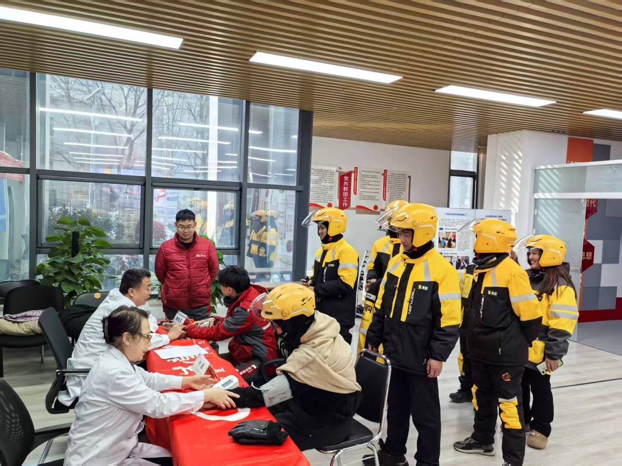 活动现场,志愿者们通过中医诊脉、医疗咨询以及血压血糖测量等基础健康检查项目,逐一了解外卖小哥的身体状况。针对冬季常见疾病、职业劳损等问题,为他们提供个性化建议。同时,在现场普及科学锻炼、劳逸结合等健康管理知识,以提升外卖小哥的健康意识,倡导科学运动、预防为主的健康理念。此次活动累计服务26人。“平时工作繁忙,很难抽出时间去医院,这样的上门服务实在是太贴心了!”外卖小哥魏亚雷在完成血压测量后由衷感慨道。