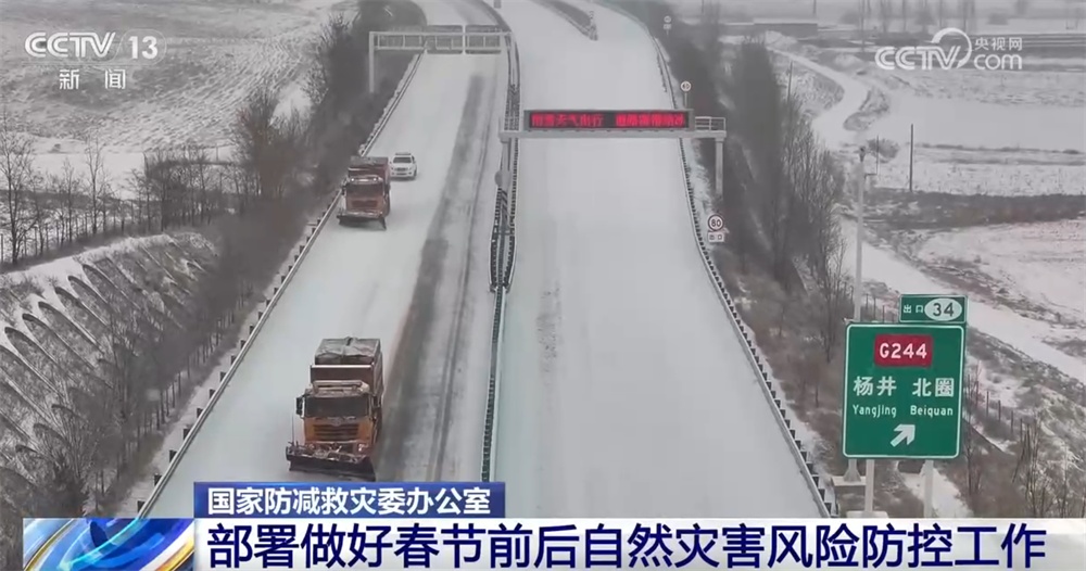 国家防灾减灾救灾委员会要求各地各部门要深入排查风险隐患,盯紧结冰路段、桥梁隧道等重点部位。