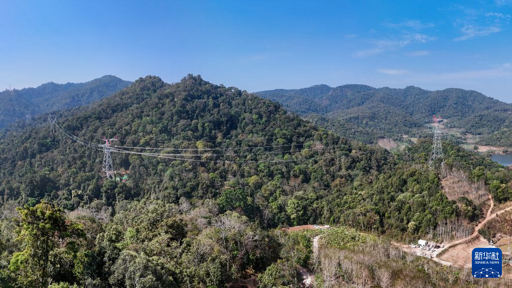 2月5日拍摄的输电导线跨国连通处(无人机全景照片)。新华社记者 彭奕凯 摄