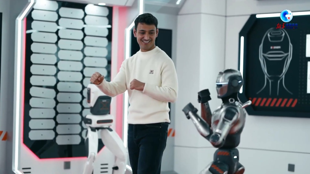 不久前,在安徽农业大学留学的巴基斯坦留学生贾拉勒来到合肥市包河区,看机器人如何“整活儿”炫技。