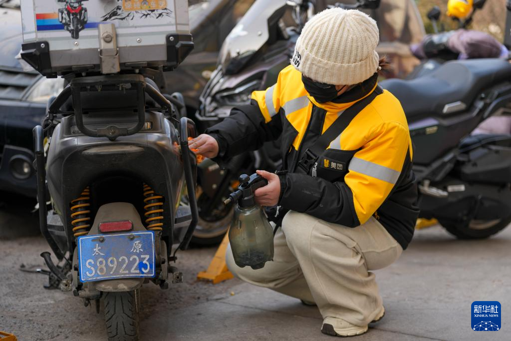 外出配送前,戚德敏清洁电动车(1月29日摄)。新华社记者 杨晨光 摄