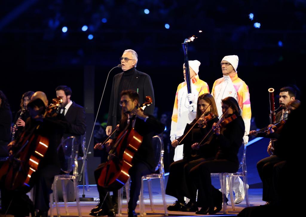 意大利盲人歌唱家安德烈·波切利唱响经典曲目《今夜无人入睡》,充满力量感的旋律在圣西罗体育场蔚蓝色灯海上空盘旋,火炬手们向着“和平之门”的方向奔跑。过去几个月,冬奥火炬穿越意大利全部20个大区、300多个市镇,即将完成最后几棒交接。