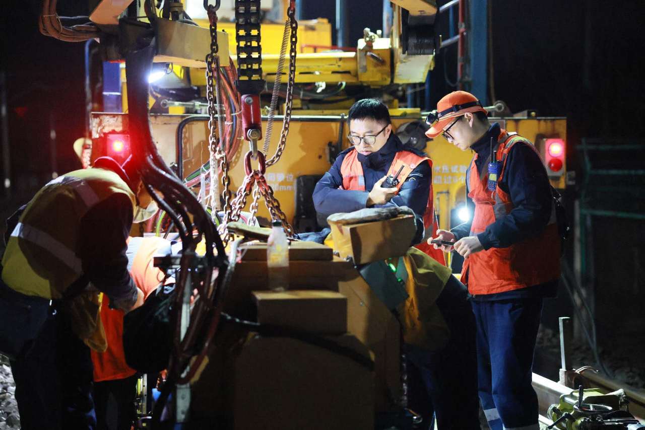 “必须赶在春运之前安全拿下!”遂宁工务段淮口南线路车间副主任刘楠的话透着决战前的紧绷。当日凌晨0点,铁路“天窗点”开启,作业人员迅速就位。机械轰鸣划破寒冬的寂静,旧轨被精准切割、移出,新轨稳稳落槽。焊接火花在夜幕中绽放,映亮了一张张专注的脸。