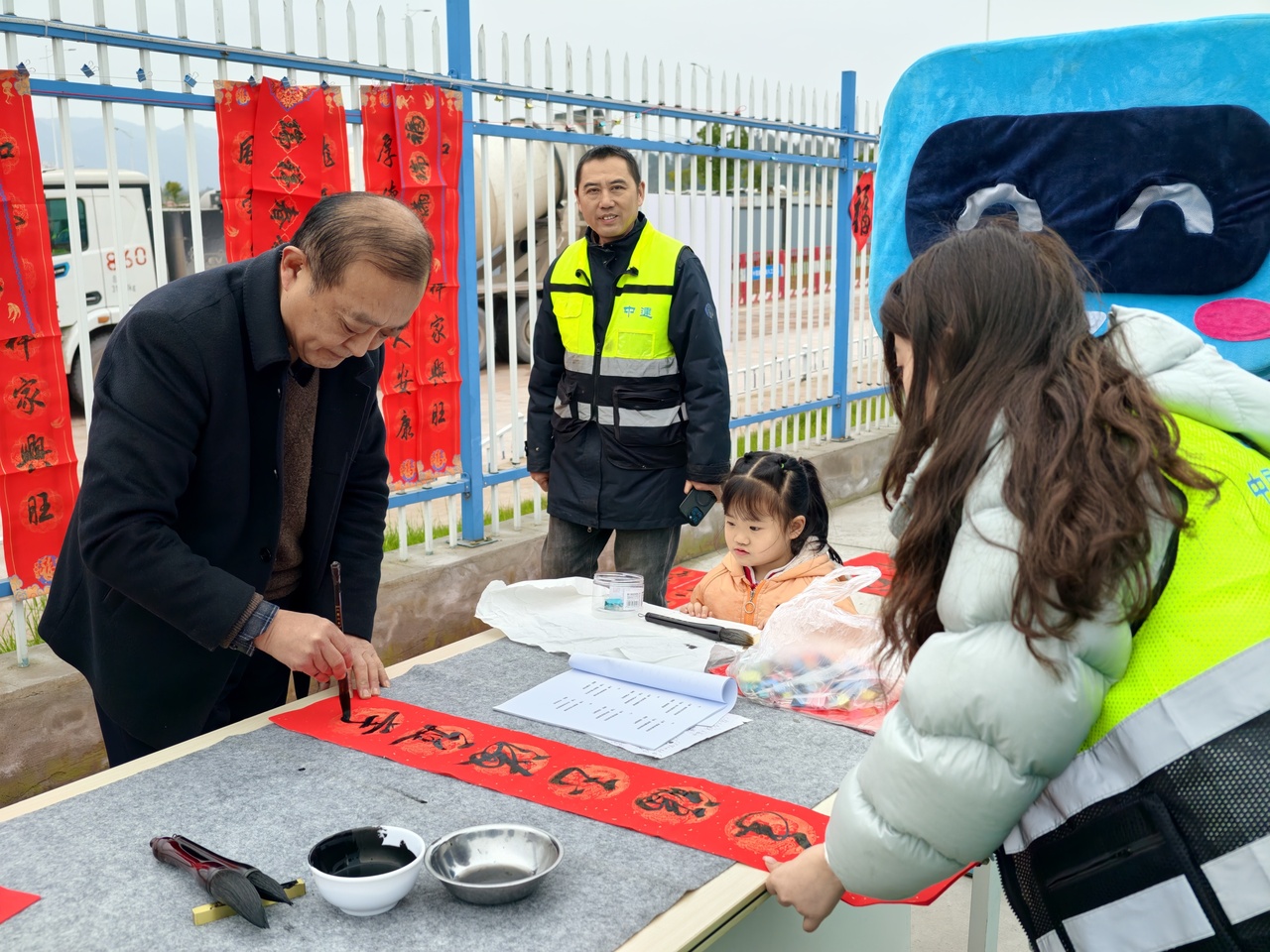 活动现场,写春联、写福字吸引了不少人围观,我要写这个“马到成功”,我要写“事业顺利”,我要写“财源广进”,帮我们办公室也写一个……大家争先恐后,纷纷提出自己的祝福需求,负责写春联的是来自重庆市老年大学的书法爱好者,他们现场挥毫泼墨,一副副饱含新春祝福的春联、一个个寓意吉祥的福字刚一写好就赢得大家争相领取,把浓浓的年味和美好祝福带回家。