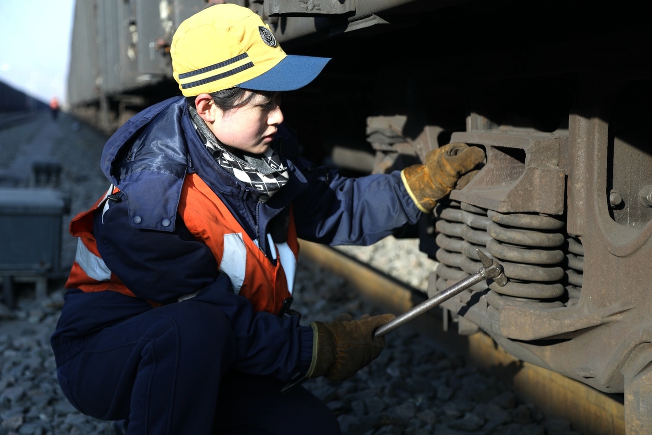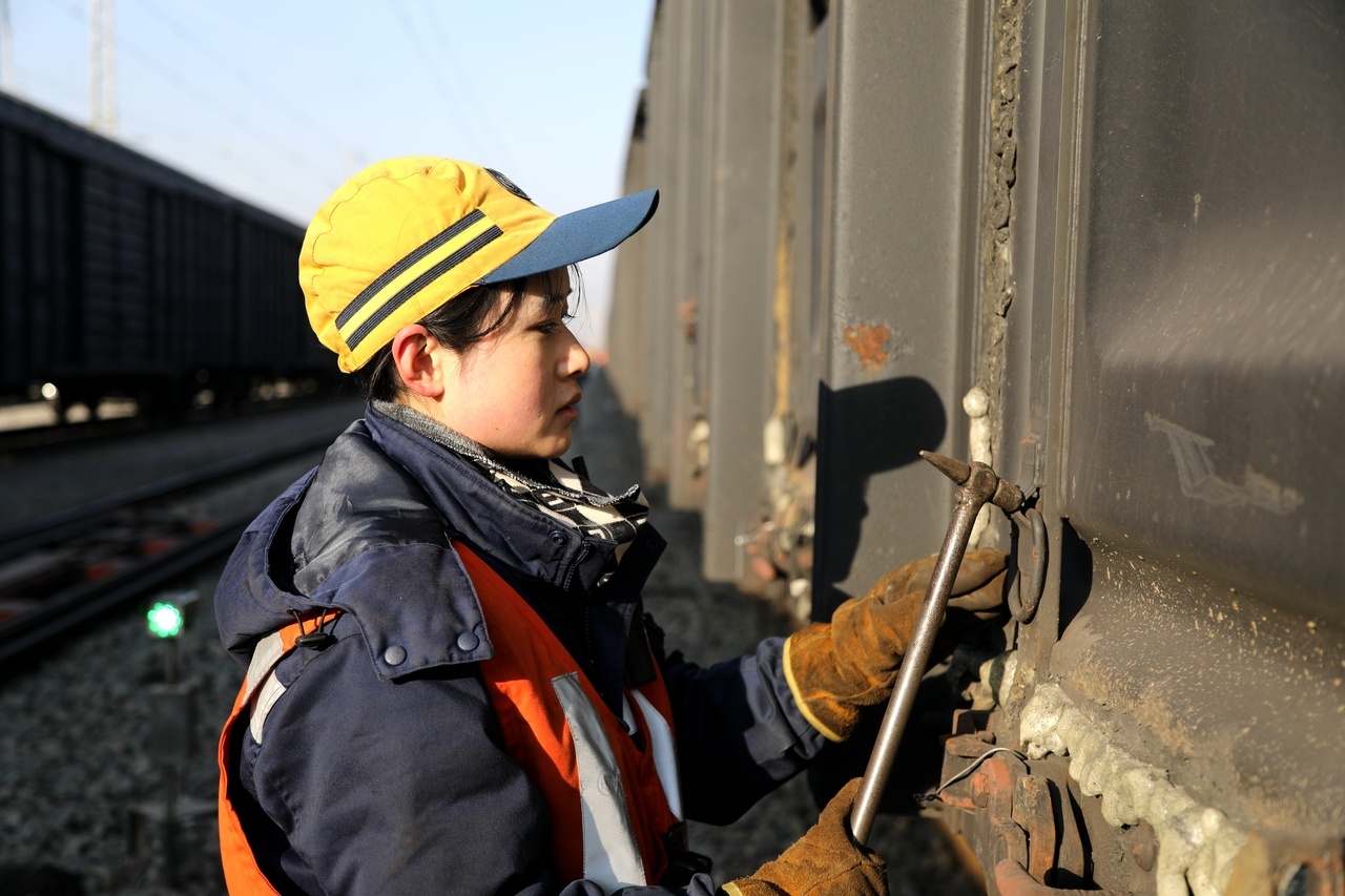 货车检车员是铁路系统最艰苦的岗位之一:每班检查200余辆车、步行近20公里、弯腰钻车数千次,常年在户外作业,日夜倒班,体力消耗极大。过去,这一岗位几乎清一色由男职工承担。初来乍到时,不少人担心两个小姑娘“扛不住”。但她们用行动回应质疑:“别人能干的,我们也能干好!”