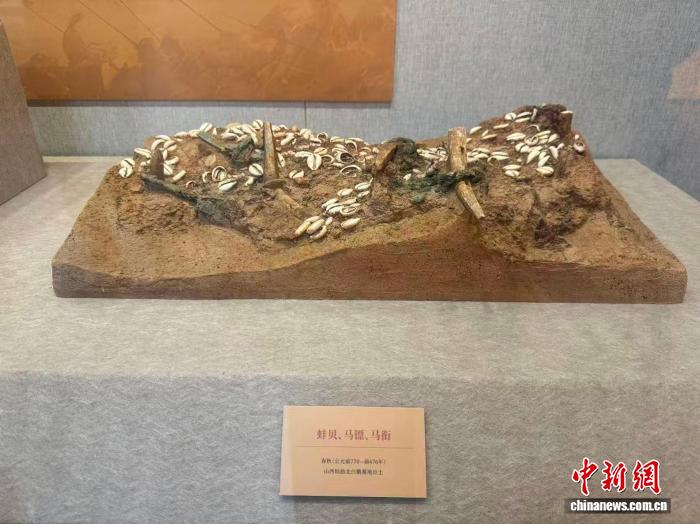 2月10日,“黄土寻骏——山西出土马文物展”在山西考古博物馆开展。图为出土于山西垣曲北白鹅墓地的一组马镖、马衔、蚌贝。中新社记者 杨静 摄