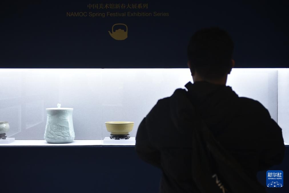 2月9日,嘉宾在中国美术馆参观展出的陶瓷作品。新华社记者 鲁鹏 摄