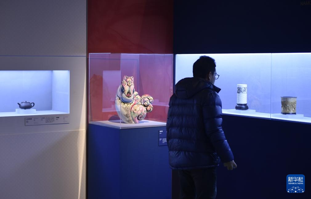 2月9日,嘉宾在中国美术馆参观展出的工艺美术作品。新华社记者 鲁鹏 摄