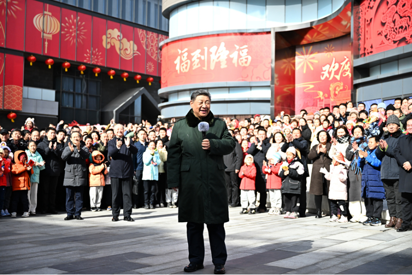 2月9日至10日,中共中央总书记、国家主席、中央军委主席习近平在北京考察并看望慰问基层干部群众。这是10日上午,习近平在东城区隆福寺街区考察时,向全国各族人民和香港同胞、澳门同胞、台湾同胞、海外侨胞致以美好的新春祝福。新华社记者 殷博古 摄