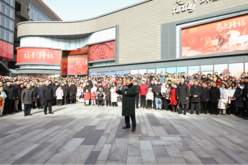 2月9日至10日,中共中央总书记、国家主席、中央军委主席习近平在北京考察并看望慰问基层干部群众。这是10日上午,习近平在东城区隆福寺街区考察时,向全国各族人民和香港同胞、澳门同胞、台湾同胞、海外侨胞致以美好的新春祝福。新华社记者 燕雁 摄
