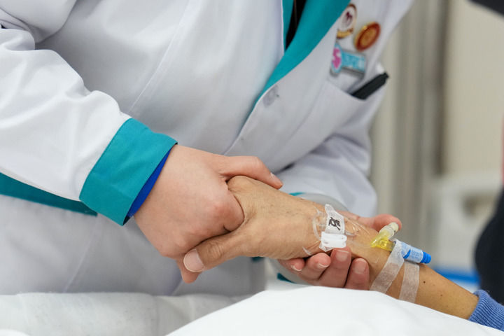 郭翠红缓步走到病床前,将精油搓热,俯身抚揉张女士僵硬的手臂,动作格外轻柔。这种温和的照护方式能舒缓神经、促进血液循环,缓解身体不适。