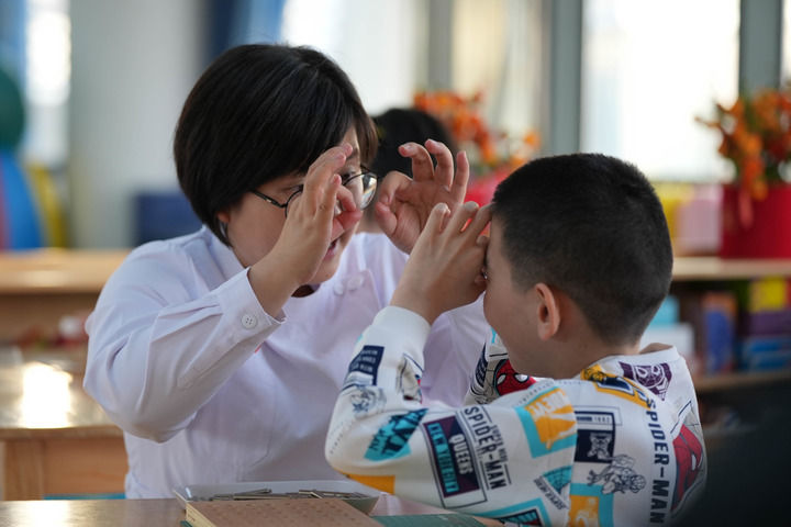 “龙龙之前无法独立行走、不能清晰表达,甚至不能握笔。通过日复一日的康复训练,如今他能写自己的名字,还能背出几首古诗。”黄会青蹲下身子,拥着龙龙告诉记者,“这孩子性格开朗,为表演好节目,这几天他专门对着镜子练口型发音。”
