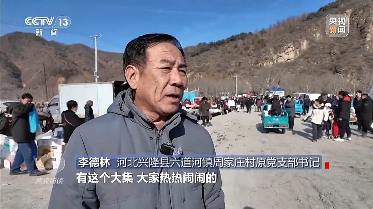 河北兴隆县六道河镇周家庄村原党支部书记 李德林:有这个大集,大家热热闹闹的,相互在这儿能见个面。农村的大集和庙会就起这个作用,大家能见个面,买点东西也方便,人气就上来了。