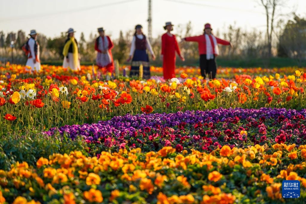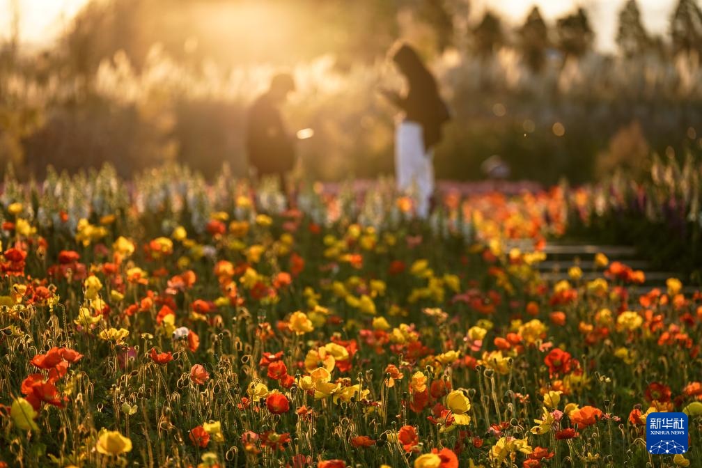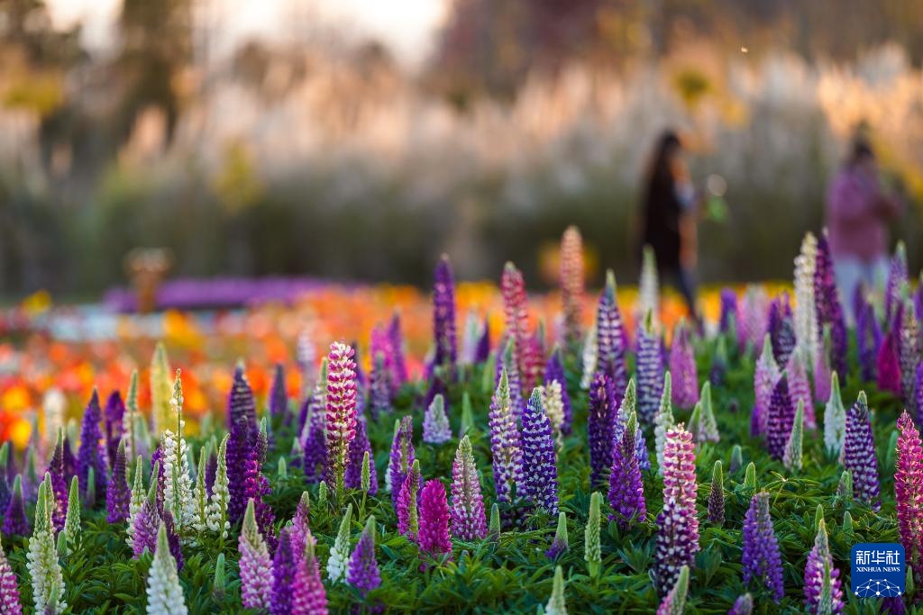 2月10日,市民、游客在昆明市呈贡区的七彩花海公园游玩。新华社记者 彭奕凯 摄