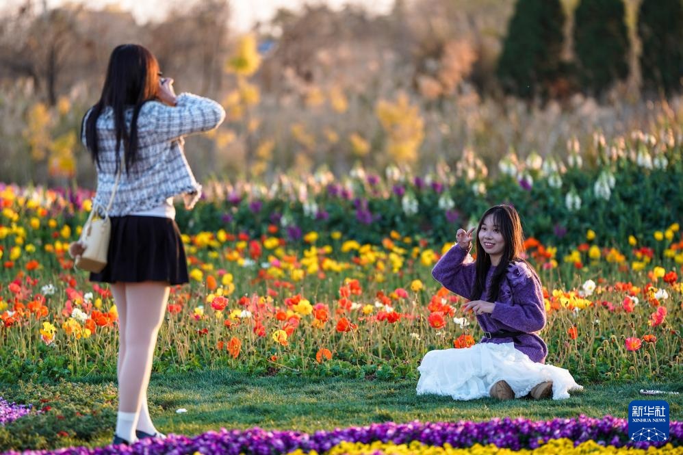 2月10日,市民、游客在昆明市呈贡区的七彩花海公园拍照。新华社记者 彭奕凯 摄