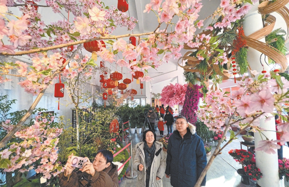 樱花与紫藤同时绽放,为即将到来的农历春节平添了一抹灵动而浪漫的色彩。北京日报记者 刘平摄