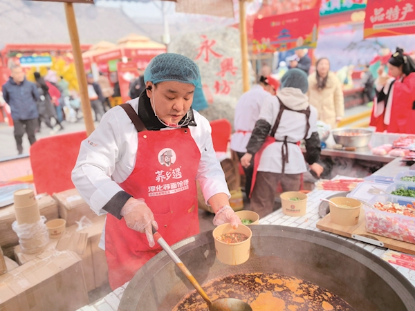 连日来,来自陕西咸阳淳化县的众多特色农产品,让来到国家3A级旅游景区——西安永兴坊的市民、游客目不暇接:金黄酥脆的淳化荞面饸饹、咬一口香甜盈口的瑞雪苹果等,引得人们纷纷驻足流连、争相品尝。“过年品年味,少不了这舌尖上的乡愁。”西安市民陈女士说。