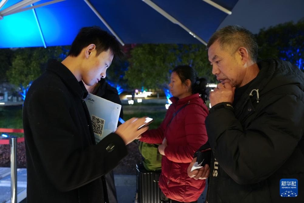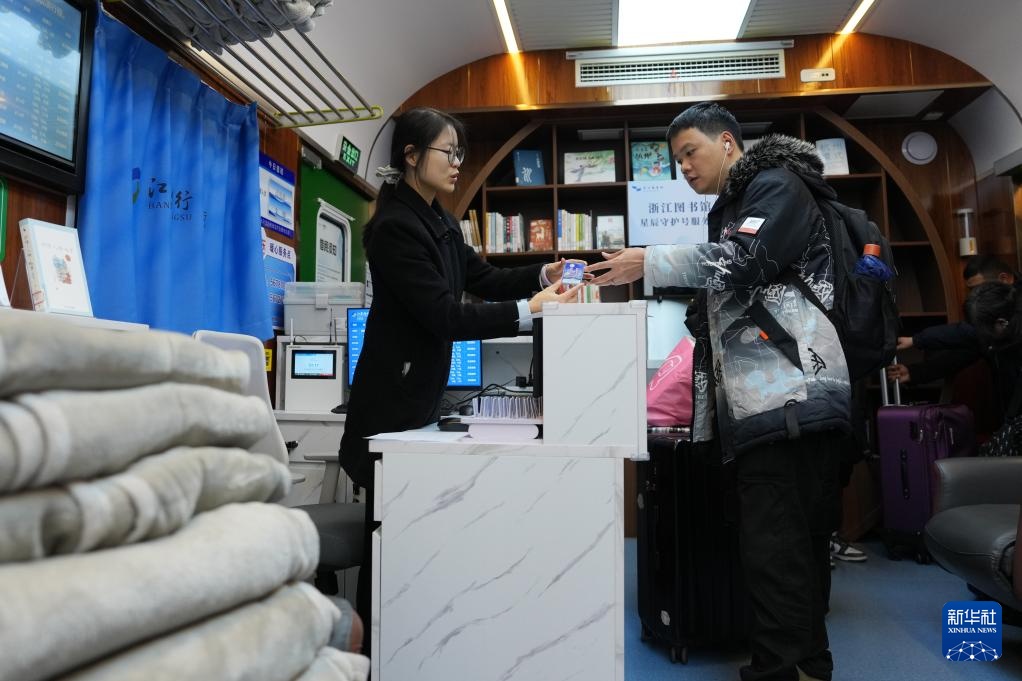 2月10日,工作人员在“星辰守护”旅客夜间休息区为旅客办理登记,旅客按需可以领取毛毯。新华社记者 黄宗治 摄
