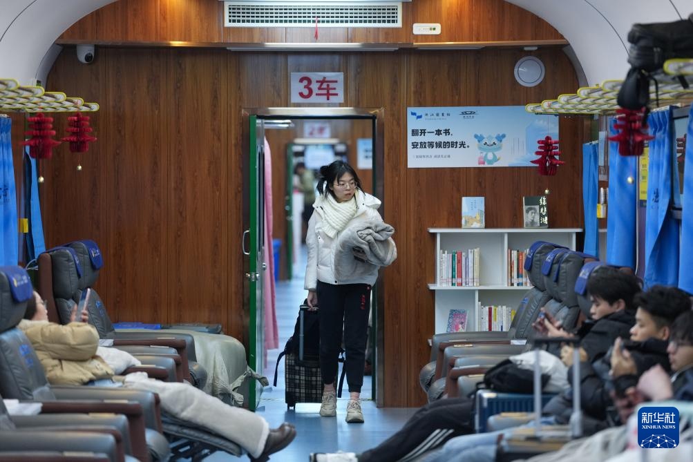 2月10日,旅客走入杭州东站“星辰守护”旅客夜间休息区寻找座位。新华社记者 黄宗治 摄