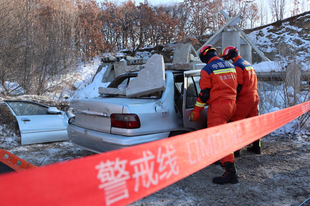 本次演练以模拟黑河市某地发生5.9级地震,导致建筑损毁、道路中断、人员被困,以及跨境口岸设施受损为背景,并叠加-30℃至-20℃的极端严寒天气,演练全程采取“异地同步、实兵实装”模式,全面检验队伍在极端环境下的快速响应、综合救援与协同作战能力。