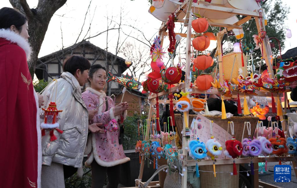 2月11日,游客在西溪湿地购买传统花灯。新华社记者 翁忻旸 摄