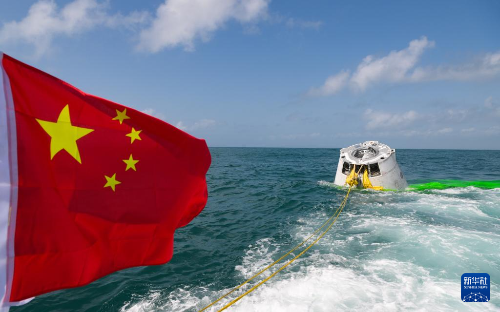 这是2月11日在海南省文昌市附近海域拍摄的返回舱。新华社记者 杨冠宇 摄