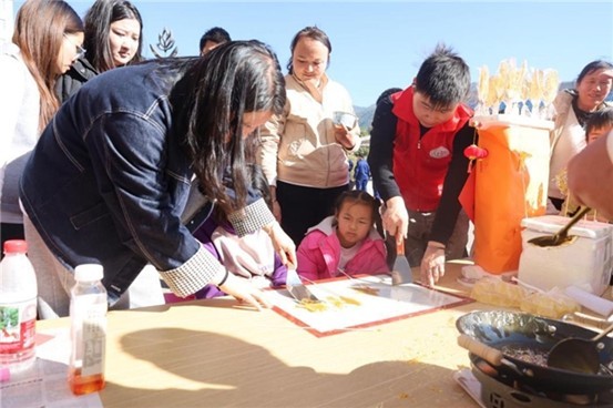 红纸裁春、糖丝绘福,非遗体验现场年味十足。在志愿者的耐心指导下,爱心托管班的孩子们与家长携手参与剪纸、糖画、套圈、投壶等传统文化活动,欢声笑语间,节日喜庆与亲子温情相互交融、温暖传递。