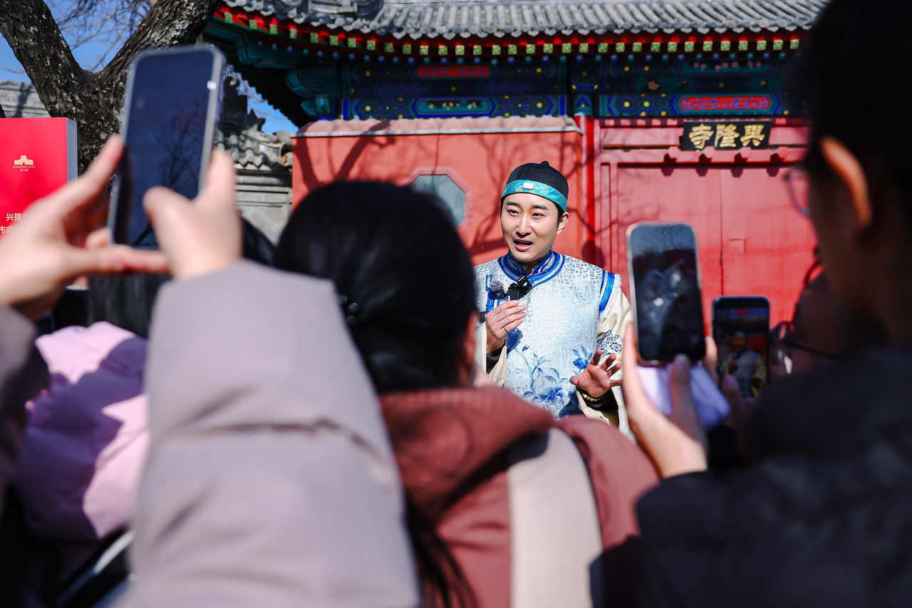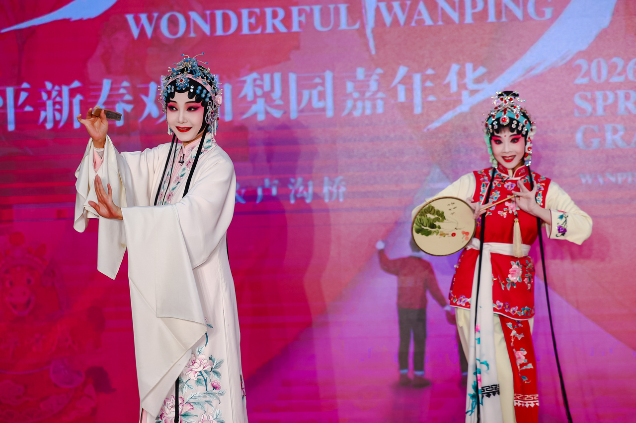 在宛平城的戏台前,来自海淀的大学生王晨刚刚在专业演员的指导下,尝试了一段《贵妃醉酒》的身段。她兴奋地展示手机里录制的视频,“这种沉浸感,让人真的走进了故事里。”