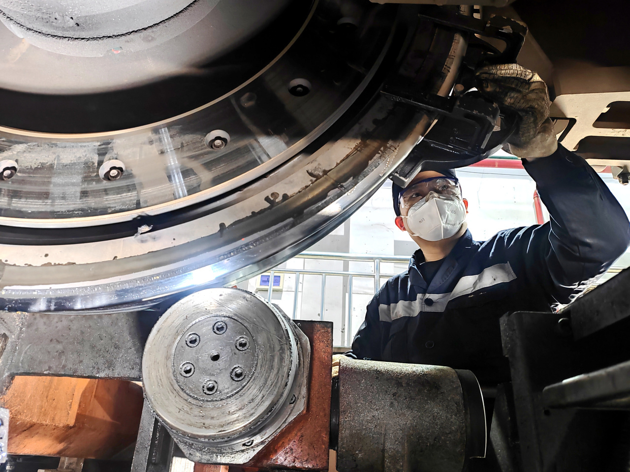郭勇和罗磊,这对拥有10年镟轮经验的90后,对此心知肚明。郭勇俯身调整镟轮机的走刀量,指尖在操作面板上精准点触,随着机器嗡鸣启动,镟修作业正式开始。