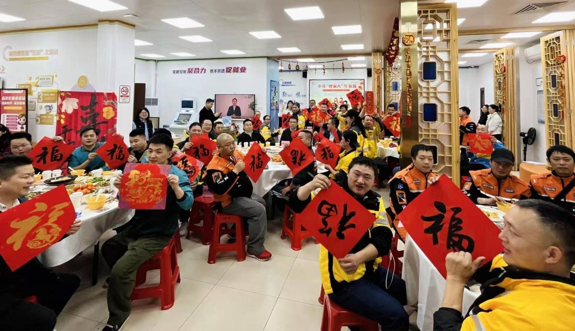 暖意在荔湾持续蔓延。2月10日,在广州市总工会、荔湾区委组织部、荔湾区委社会工作部、荔湾区总工会的指导下,“‘驿家人’年夜饭”活动在龙津街道“羊城红骑手”爱心驿站举办,60名外卖骑手、快递小哥参加。活动现场,《奔跑吧 小哥》主题MV首次发布,明快的旋律、暖心的歌词唱出了骑手们的付出与坚守,引起了大家的共鸣。驿站内,书法爱好者泼墨挥毫,骑手们纷纷挑选心仪的春联和“福”字,浓浓的年味在现场弥漫。