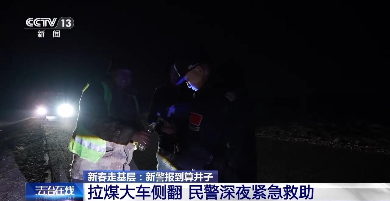 好在当时还有一辆同行的大货车,发生车辆侧翻的司机暂时待在这辆同行的车上,温度能够保证。确认司机身体没问题后,新警冯万利给他们送上了两瓶水。据报警司机介绍,因为他驾驶时注意力不集中,导致了车辆侧翻。