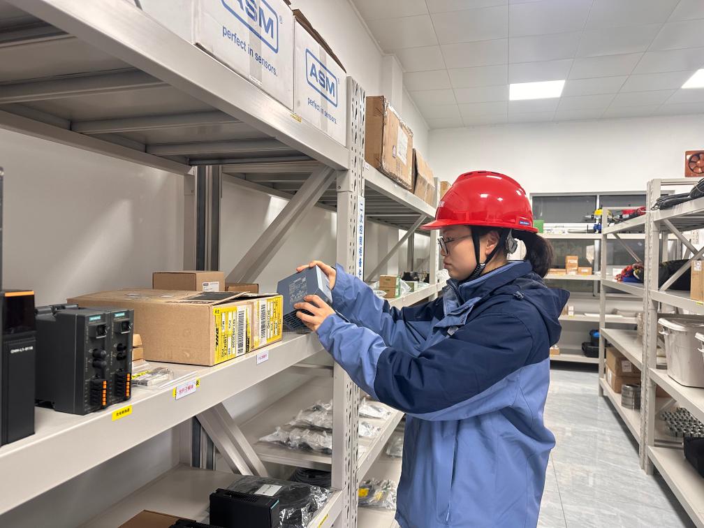 胡航在应急保障室检查备品备件。新华社记者戴锦镕 摄