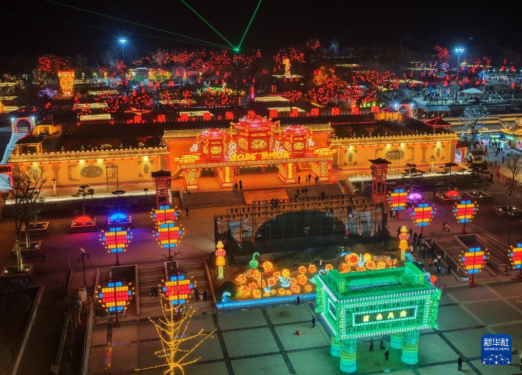 2月12日拍摄的第九届陕州灯会现场(无人机照片)。新华社记者 李嘉南 摄