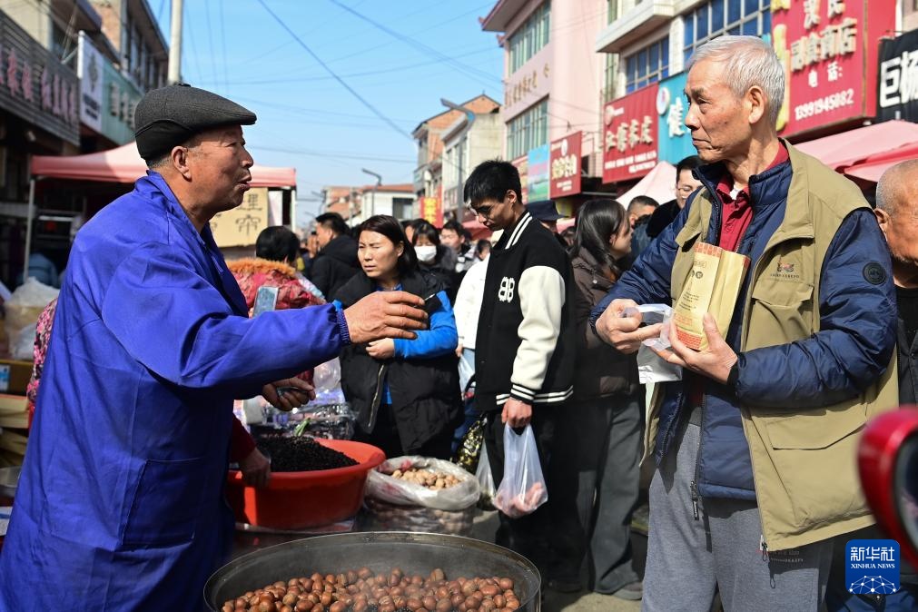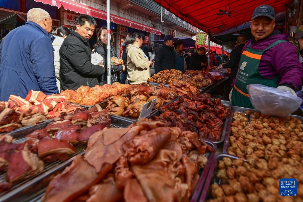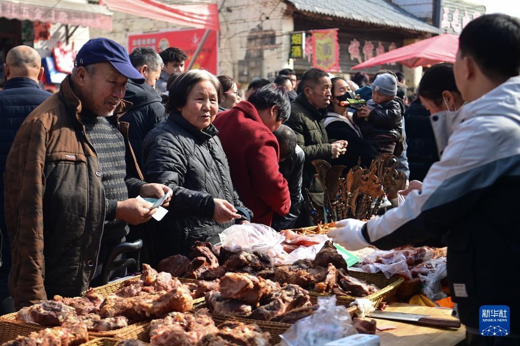 2月13日,游客在焦岱大集上选购特色食品。新华社记者 邹竞一 摄