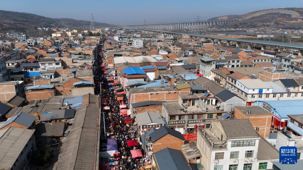 2月13日拍摄的焦岱大集(无人机照片)。新华社记者 邹竞一 摄