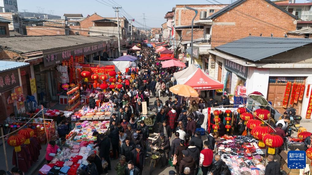 2月13日,游客在焦岱大集上赶集购物(无人机照片)。新华社记者 邹竞一 摄