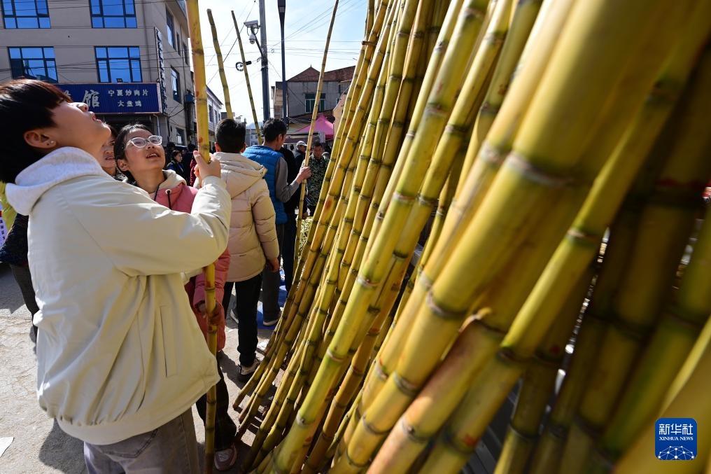 2月13日,游客在焦岱大集上选购甘蔗。新华社记者 邹竞一 摄