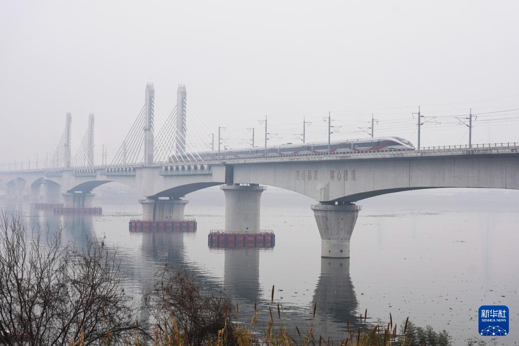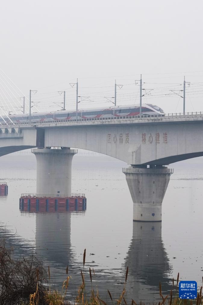 2月14日,列车在金建高铁兰江特大桥上行驶。新华社记者 黄宗治 摄