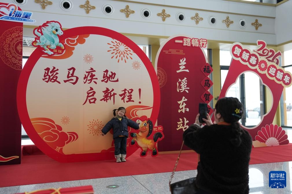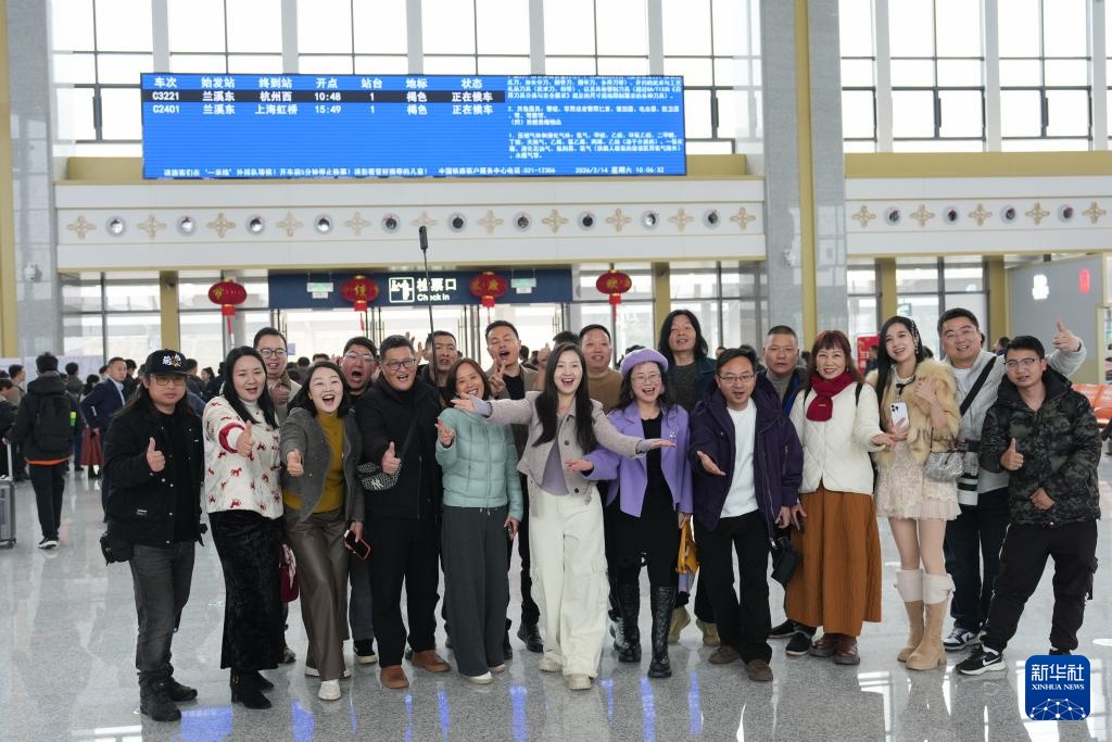2月14日,准备登车的乘客在兰溪东站候车厅留影。新华社记者 黄宗治 摄