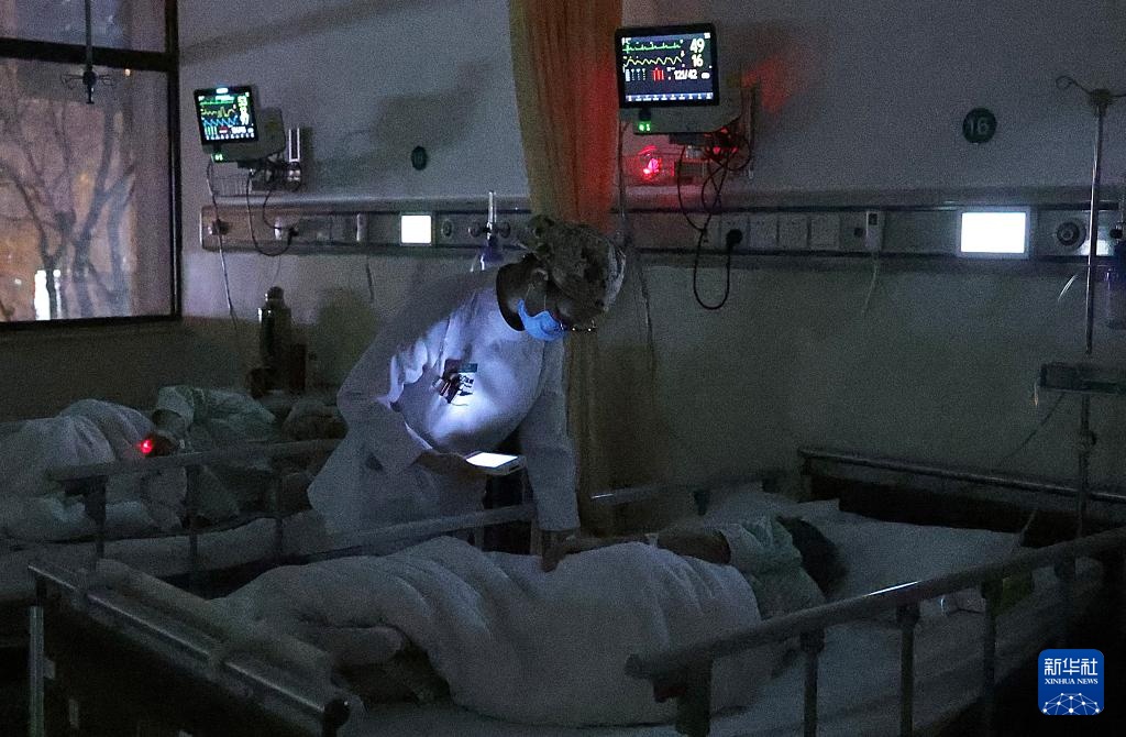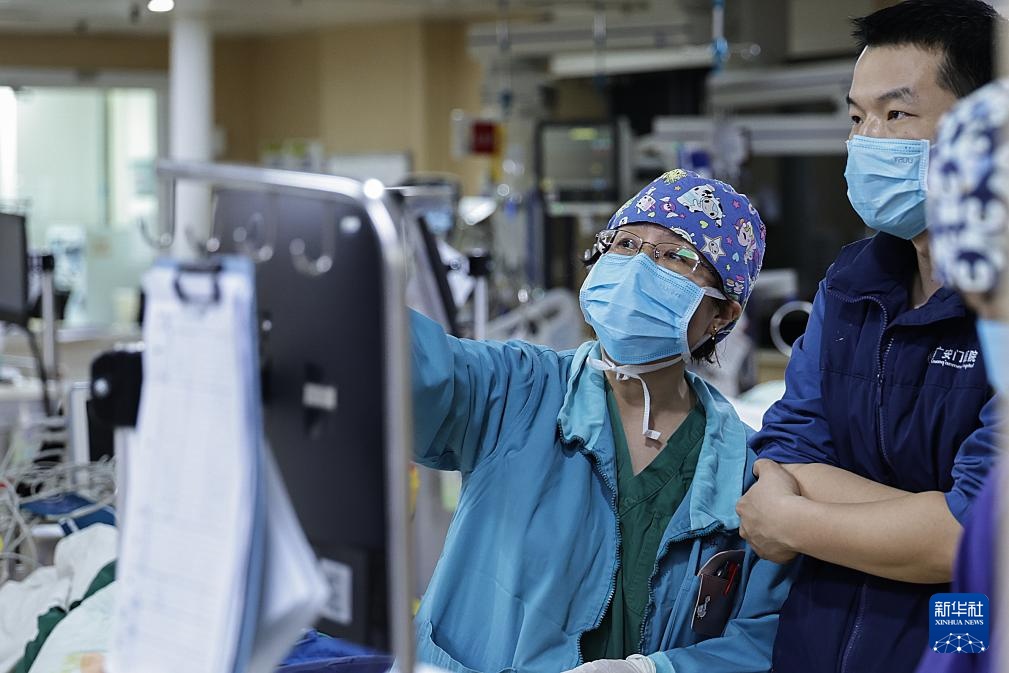 2月9日7时许,急诊科主治医师李琼在查看病人病情。新华社记者 张玉薇 摄