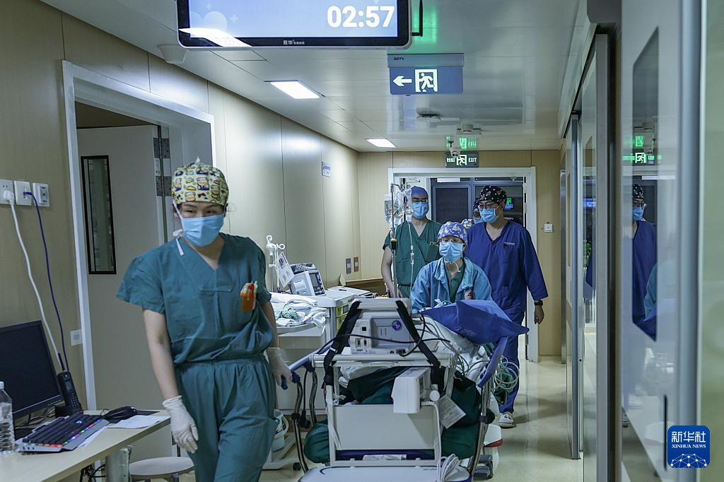 2月4日3时许,重症监护室值班护士在接收术后患者。新华社记者 王婧嫱 摄