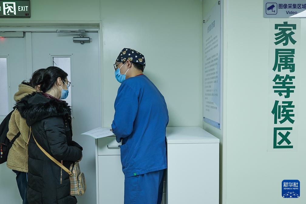 2月4日3时许,重症监护室的护士对家属进行入院宣教。新华社记者 张玉薇 摄