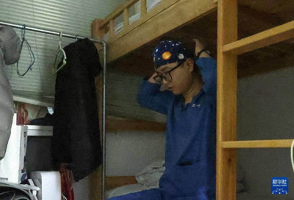 2月4日5时许,急诊科主管护师李东旭在休息室接到电话后整理衣物准备回到工作岗位。新华社记者 张玉薇 摄