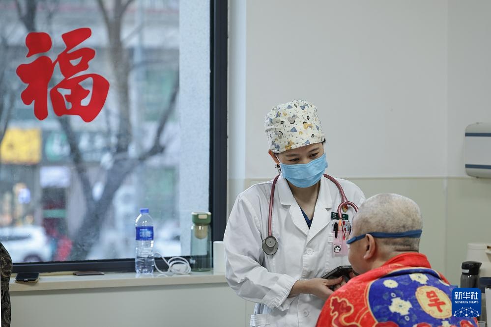2月9日9时许,急诊科主治医师李琼为住院病人进行针灸治疗。新华社记者 张玉薇 摄