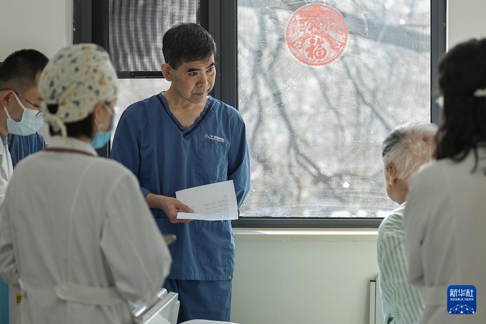 2月9日10时许,急诊科资深主任齐文生(左)在急诊病房查房。新华社记者 张玉薇 摄