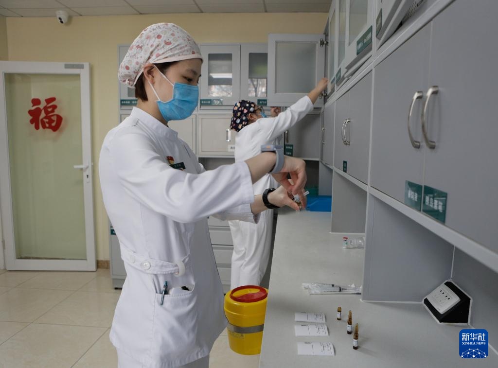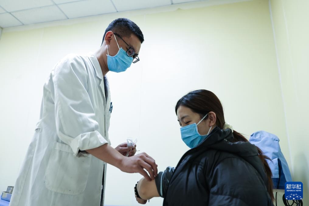 2月12日13时许,护士为患者配液。新华社记者 石枫 摄