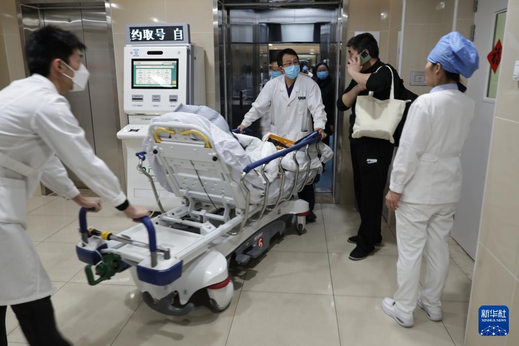 2月4日2时许,医护人员将一名刚做完手术的病人转移到重症监护病房。新华社记者 张玉薇 摄